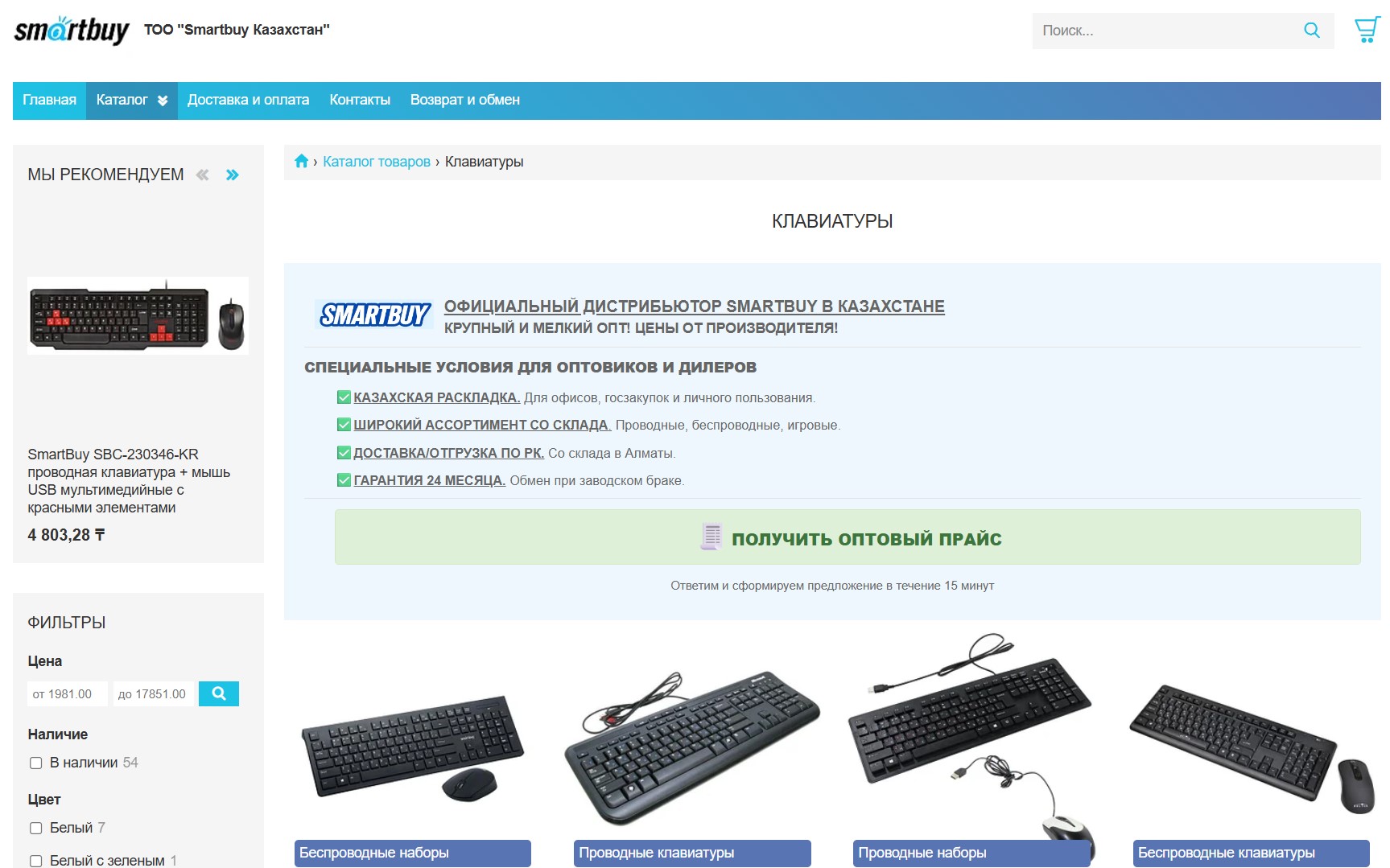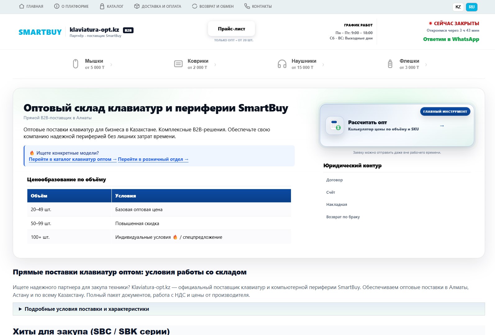 Интерфейсная структура для презентации ассортимента, укрепления доверия к поставщику и удобной навигации по категориям.